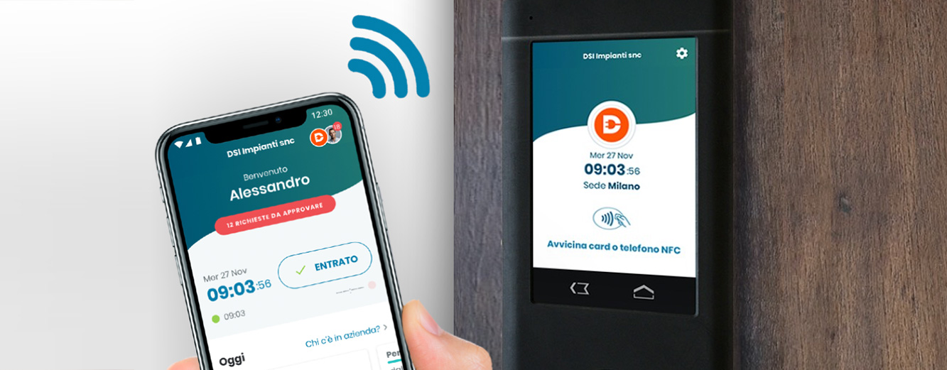 Bluetooth y el lector de credenciales en un solo dispositivo ya listo para ser instalado en la pared y empezar a controlar la asistencia inmediatamente usando tanto el teléfono inteligente como las credenciales NFC.