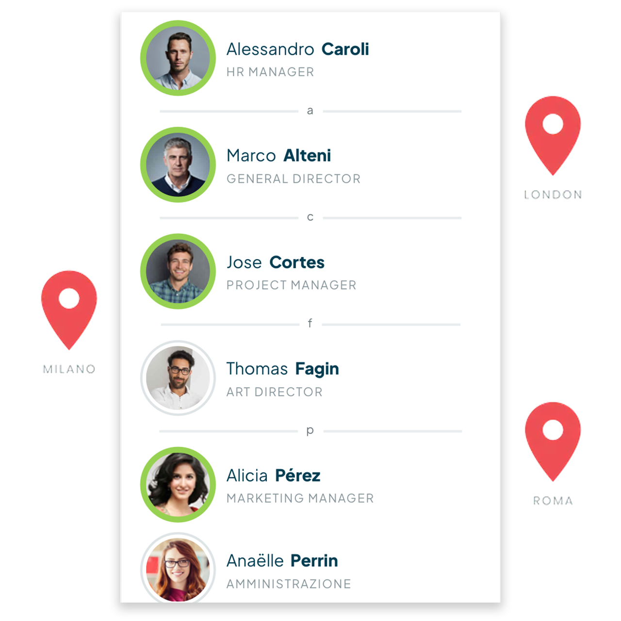 Fluida vous permet de savoir en temps réel qui opère et à partir de quel endroit : la personne ayant pointé en arrivant est mise en évidence par la couleur verte. Le responsable peut ainsi disposer des informations qu’il recherche, et il pourra mieux gérer le droit de déconnexion en évitant de contacter un collègue en congé ou en dehors des heures de travail prévues.